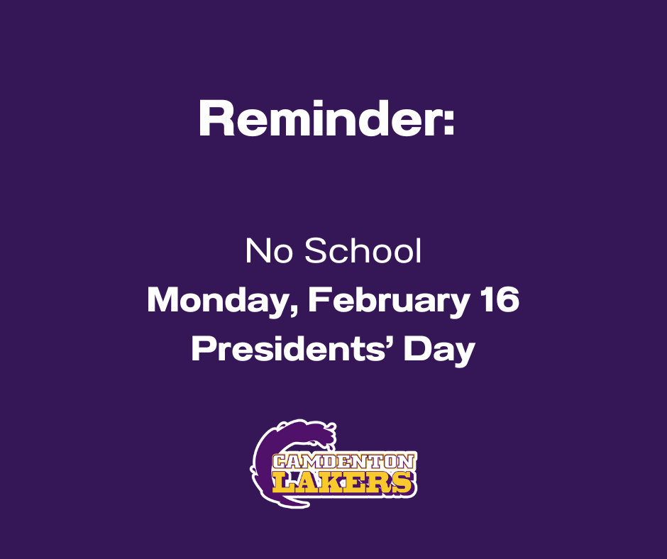 No School - February 16 As a reminder, there will be NO SCHOOL on Monday, February 16, in observance of Presidents' Day.